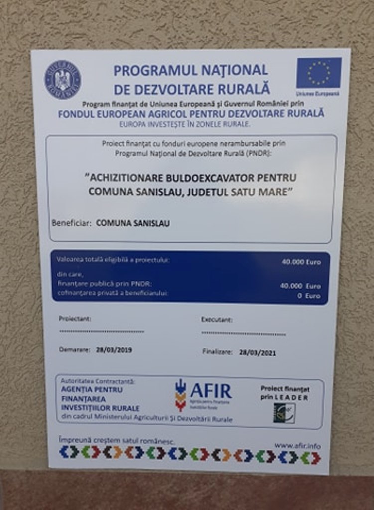 Achizitionare buldoexcavator pentru comuna Sanislau, judetul Satu Mare (publicat 04.11.2020)